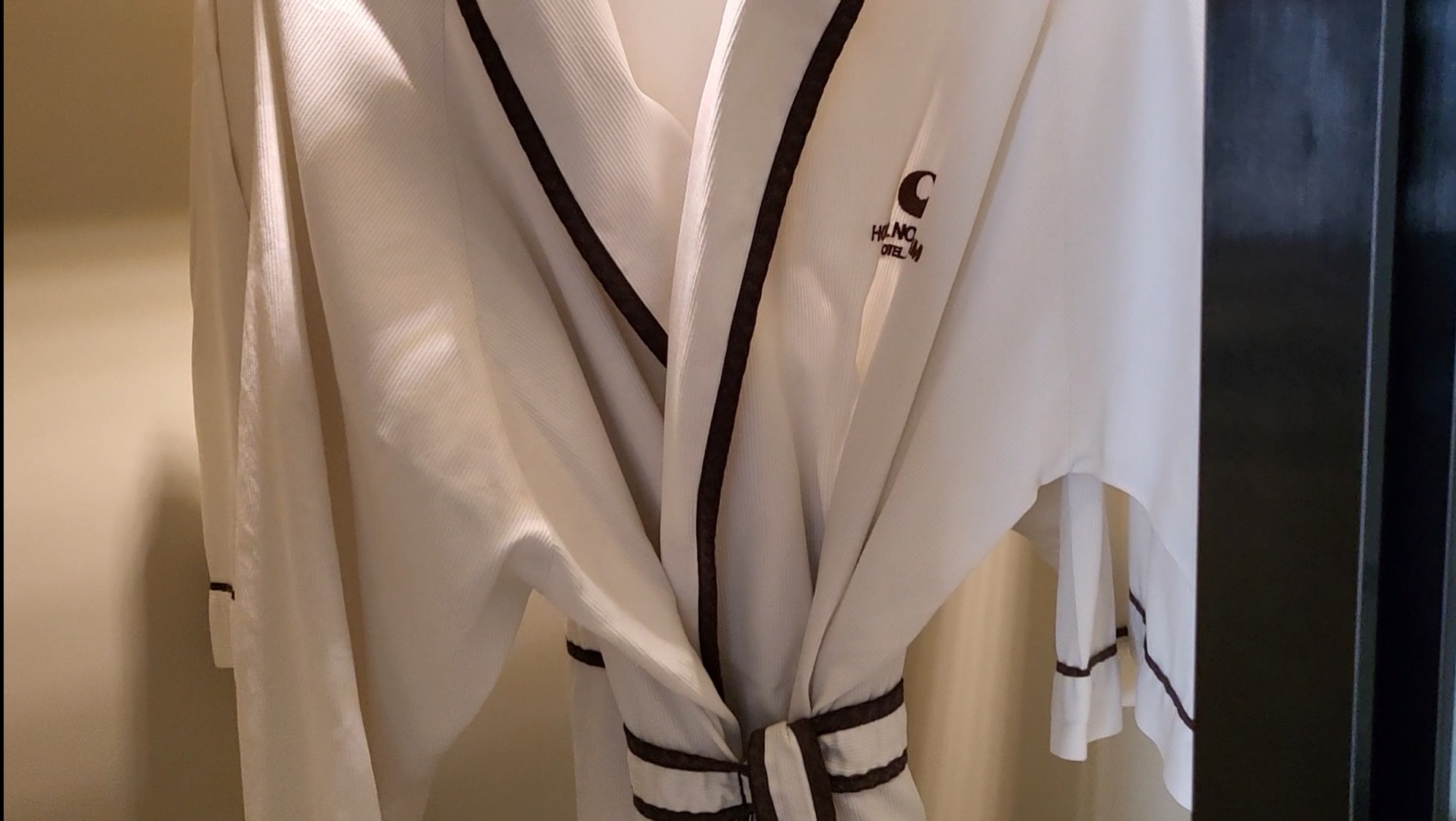 There are laundry bags, towel hooks, hangers, bathrobes, slippers, and shoe shine cloths.