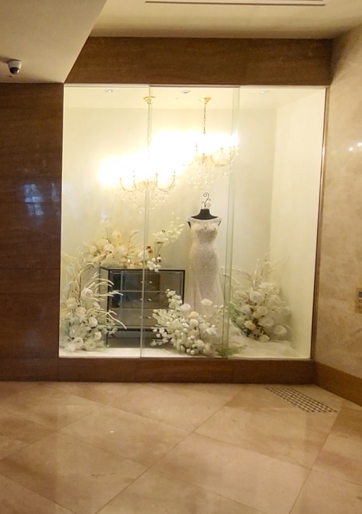 호텔로비에 웨딩드레스 전시 해 놓은 거 처음봐요.