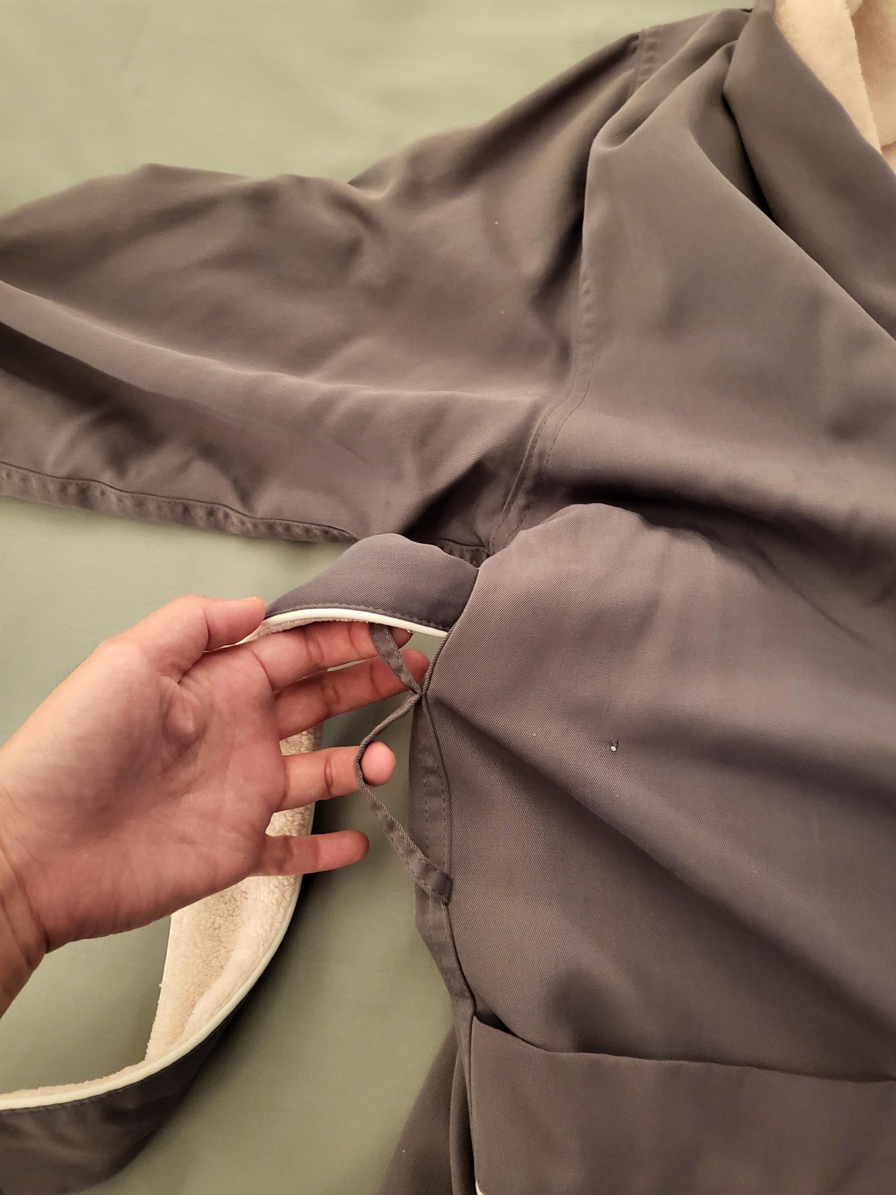 There are two loops to tie the waist, so you can adjust the position. (Wow, that's really thoughtful. I've never seen anything like this before.)