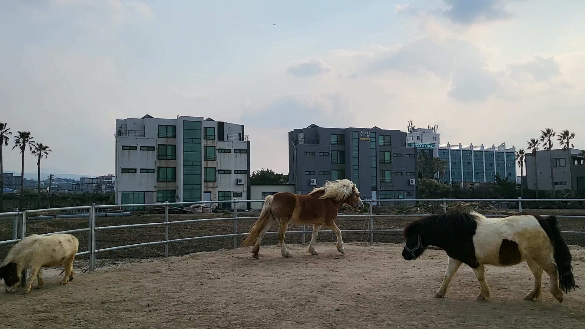 우와 멋있다.. 저렇게 머리카락(?)이 하얀 말은 처음 봐요. 제주마라고 합니다.