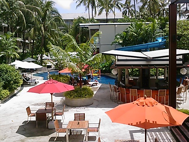 방에서 바라본 노보텔 수린비치 리조트 수영장 뷰.
