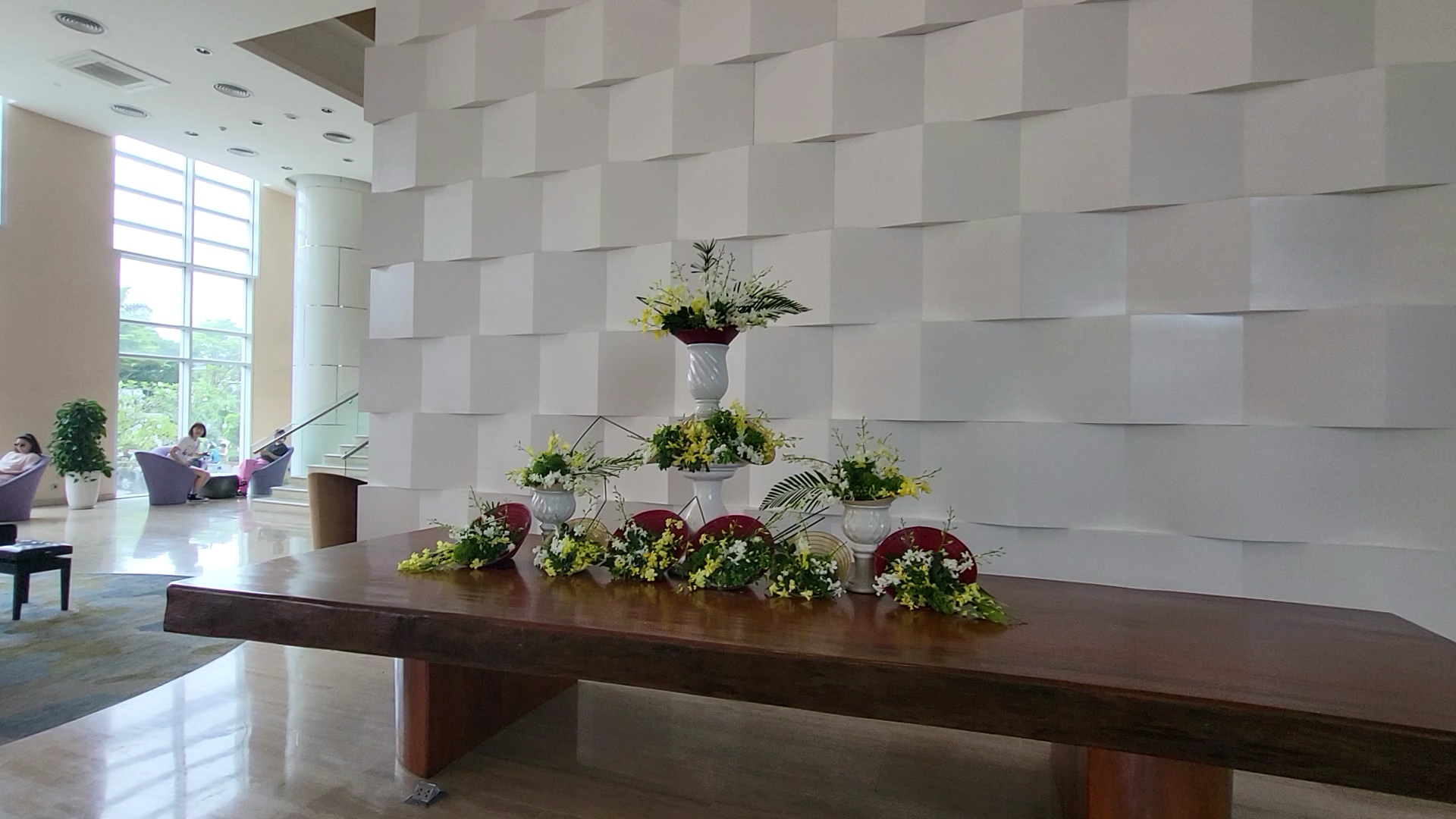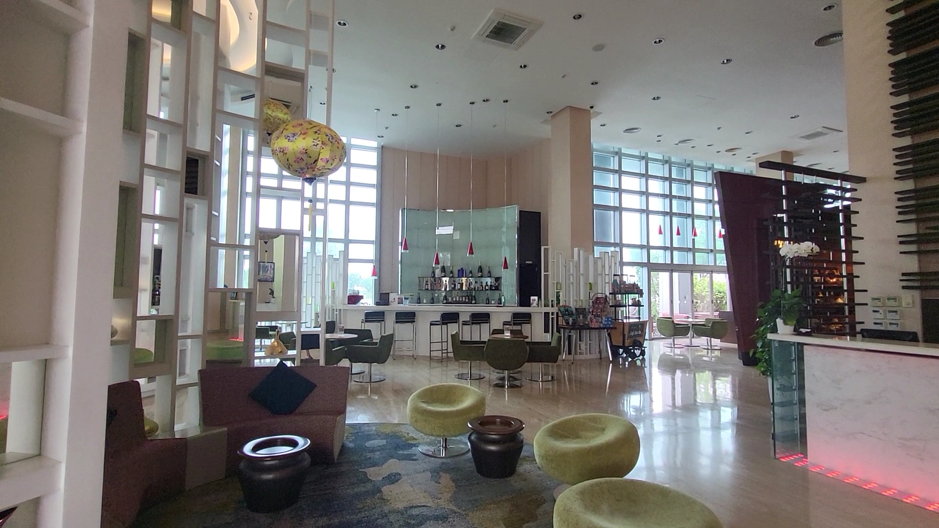 The first impression of the Grand Mercure Da Nang Hotel lobby was vibrant and colorful. This hotel seemed to be popular among group travelers.