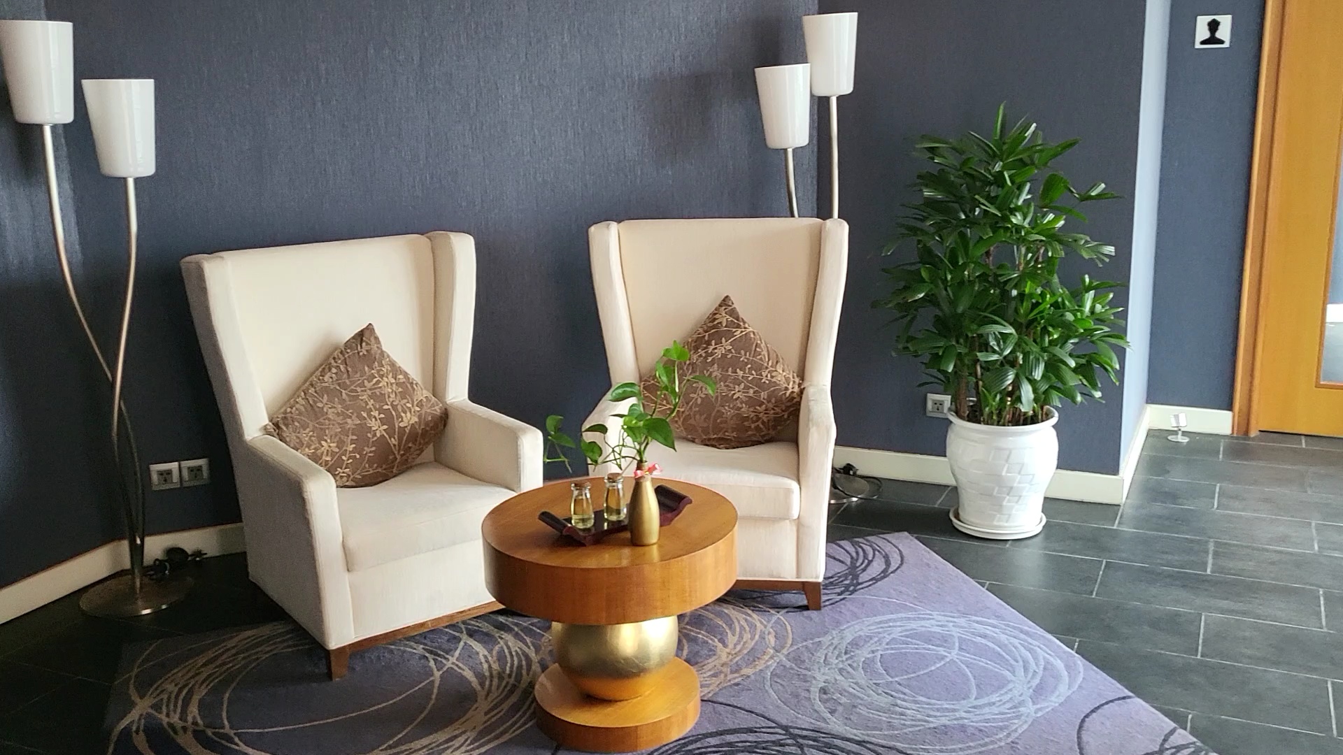 The ceiling decoration in front of the elevator resembles droplets of water, creating a whimsical and fluid sensation, as if you are immersed underwater.