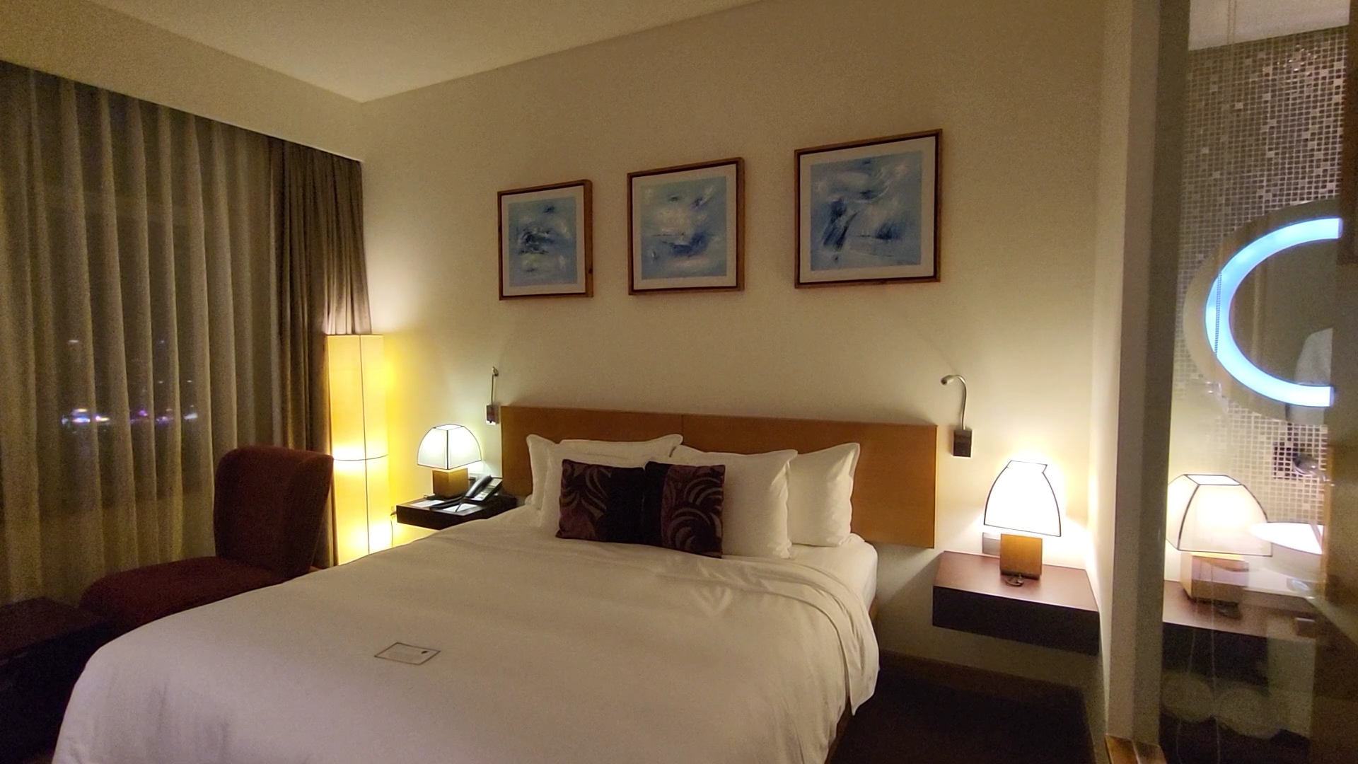 깔끔하고 아늑한 방이에요. 그랜드머큐어 다낭 호텔은 밤 야경이 예쁜 호텔이에요.