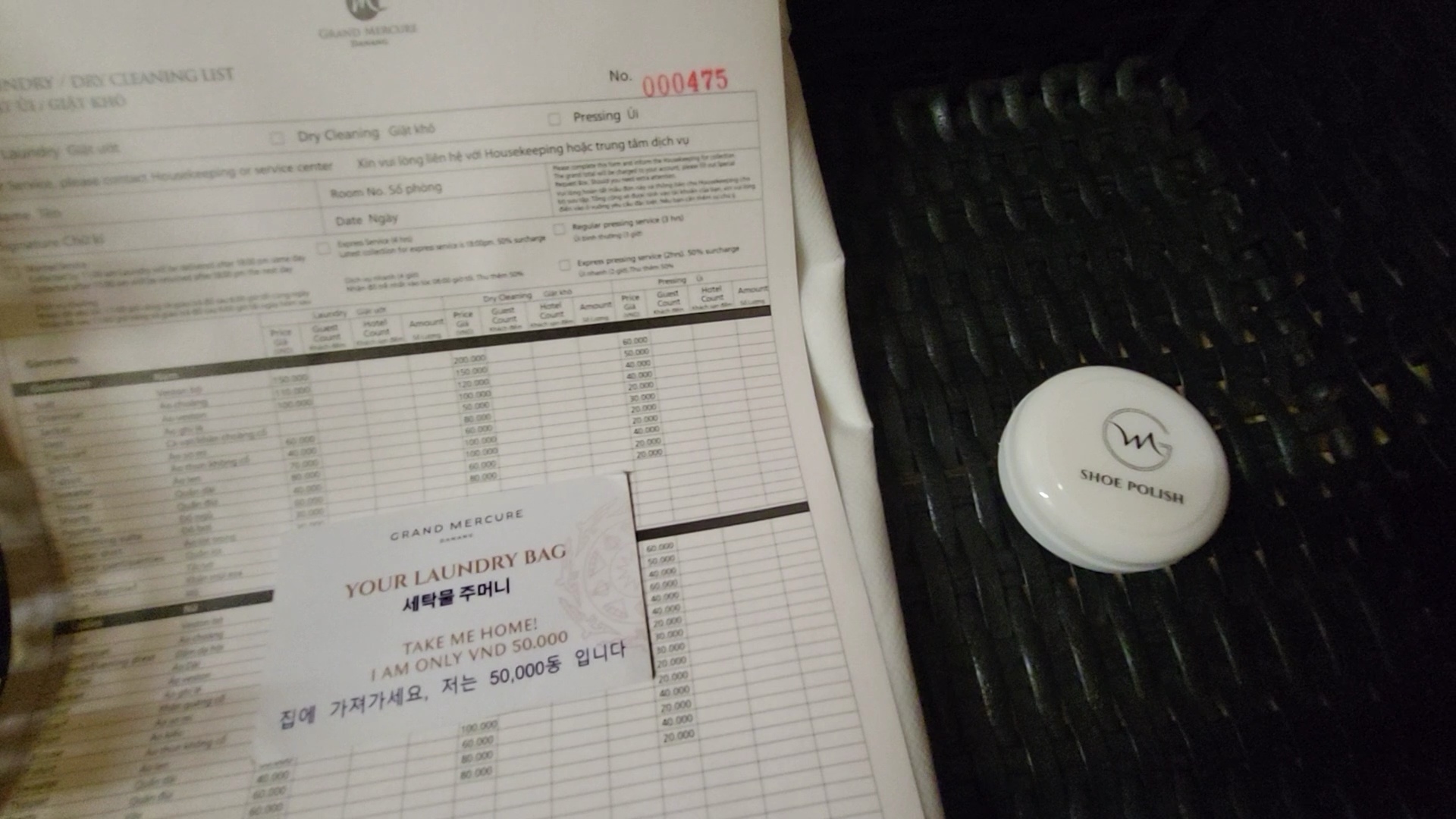 '세탁물바구니 집에 가져가세요. 저는 오만 동입니다?' 뭔가 말이 좀 이상한데 ㅋㅋ 번역기 돌렸나 봄.