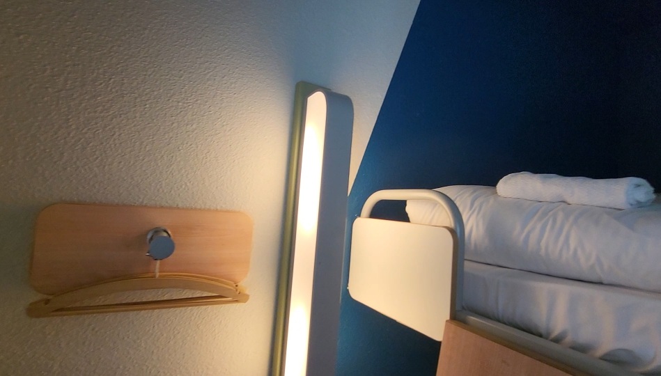 Additionally, there were no obstacles blocking the way when climbing up the ladder, making it easier to get in, and there was no bedside table next to the bed, which was different from the Zurich Airport branch.