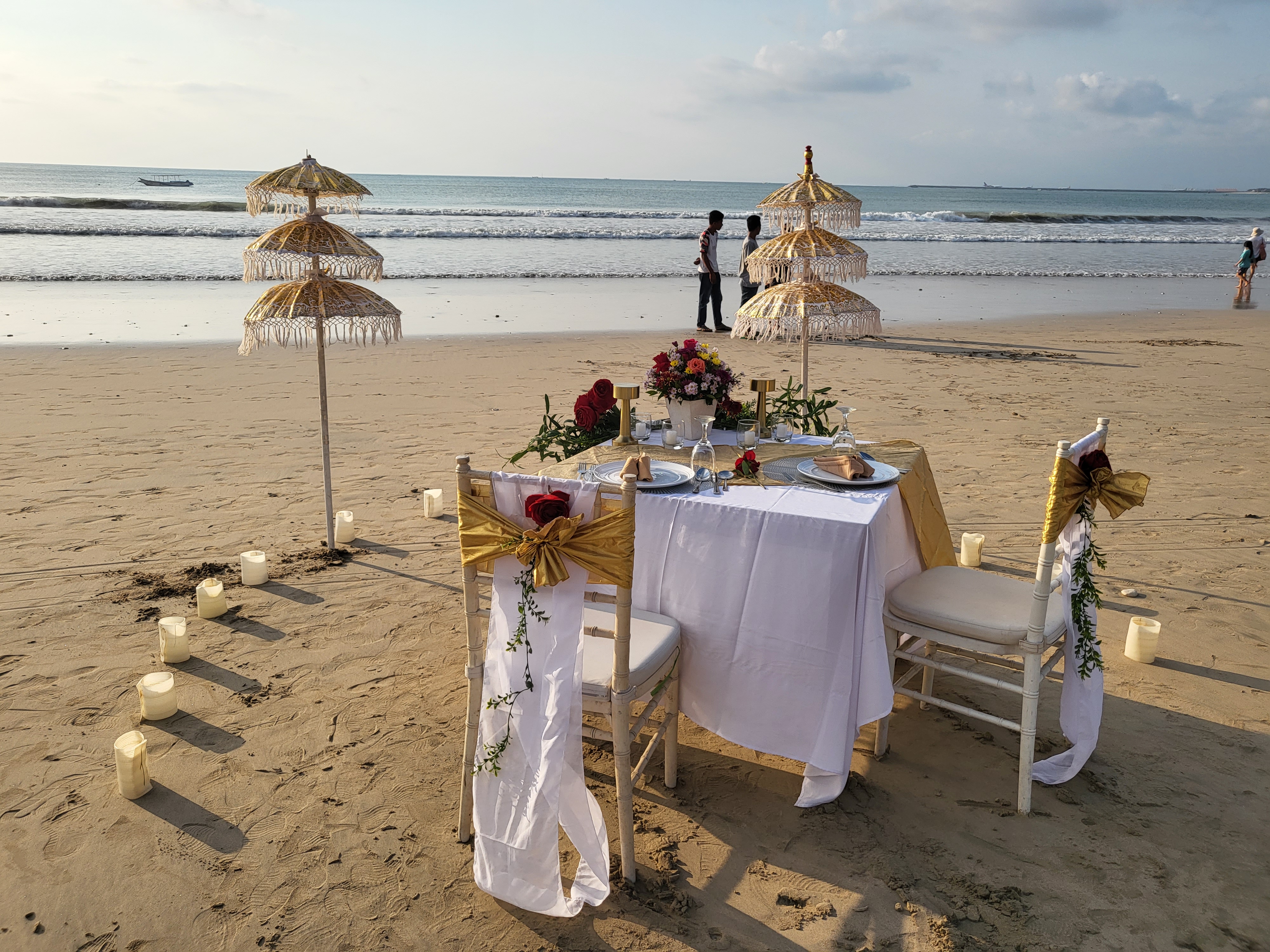 Intercontinental Bali Resort's proximity to Jimbaran Beach is indeed a great advantage. Jimbaran Beach is famous for its seafood, and being able to walk from the resort to enjoy seafood while watching the sunset must be a fantastic experience. The fact that it's a popular place with people gathering adds to the allure. It seems they also offer luxurious seating arrangements for honeymooners, making it even more special. Jimbaran Beach faces west, providing a stunning view of the sunset. Did you know that Bali sunsets are known for their purple hues? Personally, I found Jimbaran Beach much more enjoyable than Nusa Dua Beach.