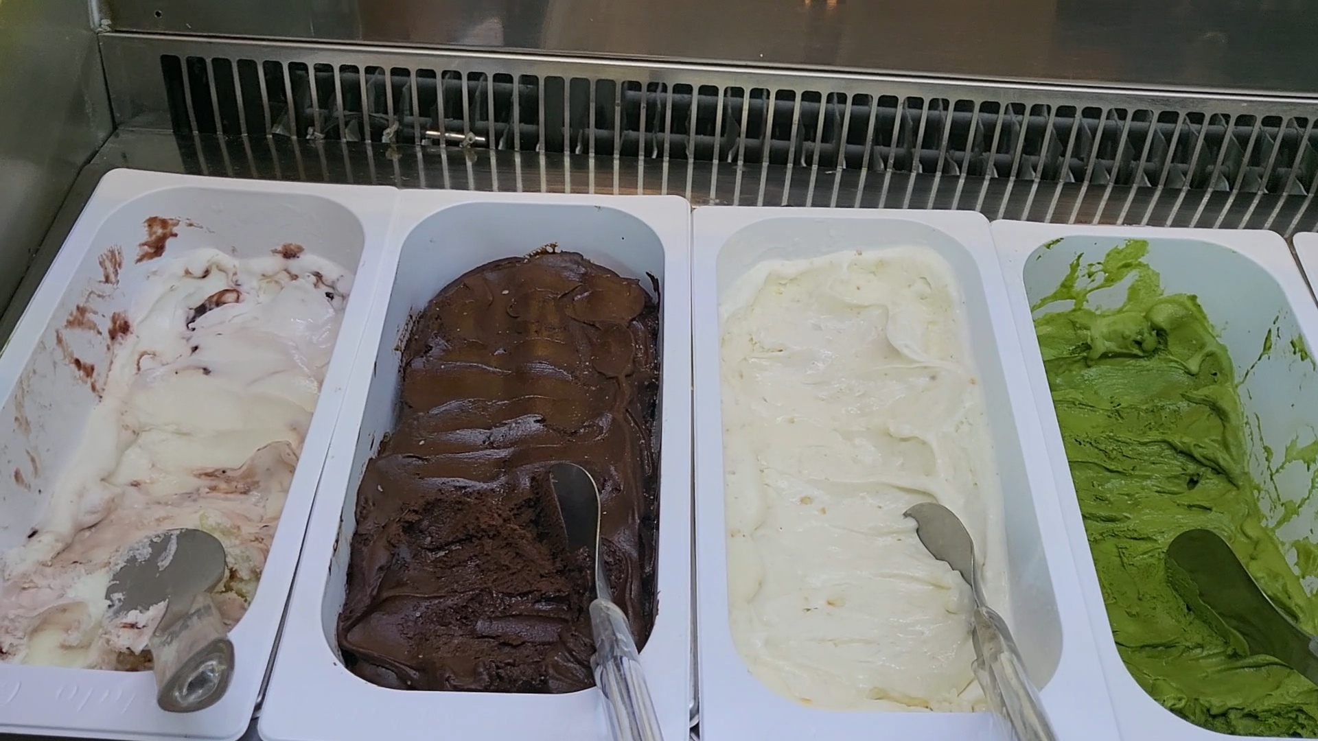 젤라또 종류는 망고, 쿠키, 녹차, 마스코타 치즈 , 쿠즈코 초콜릿, 뚜또 보스코 (지중해 요거트)