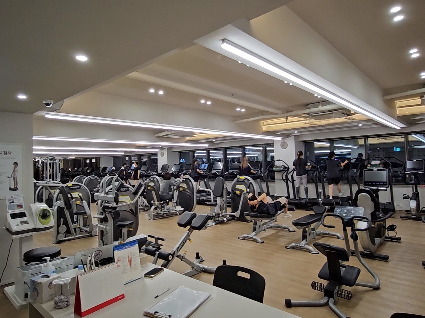 코리아나 호텔 4층 헬스장이에요. 투숙객은 하루에 1회 무료입니다.
