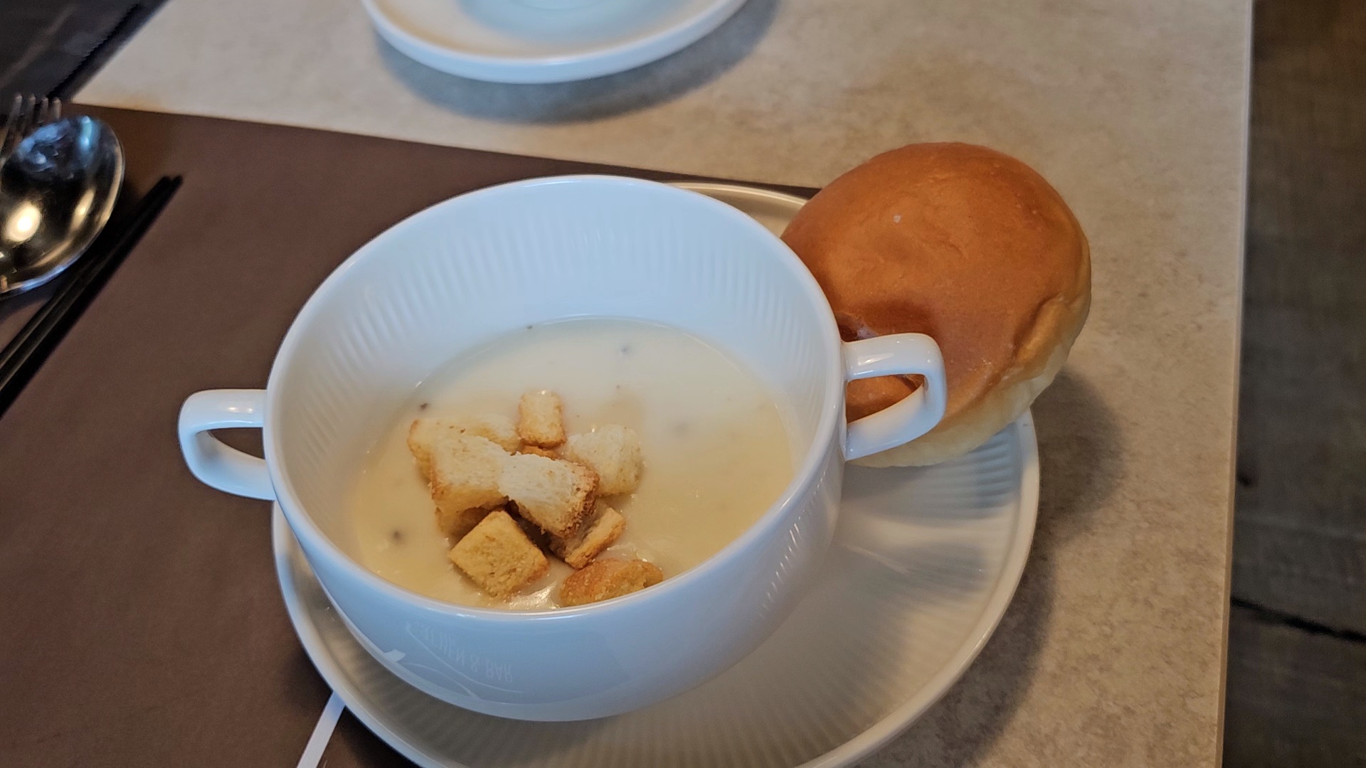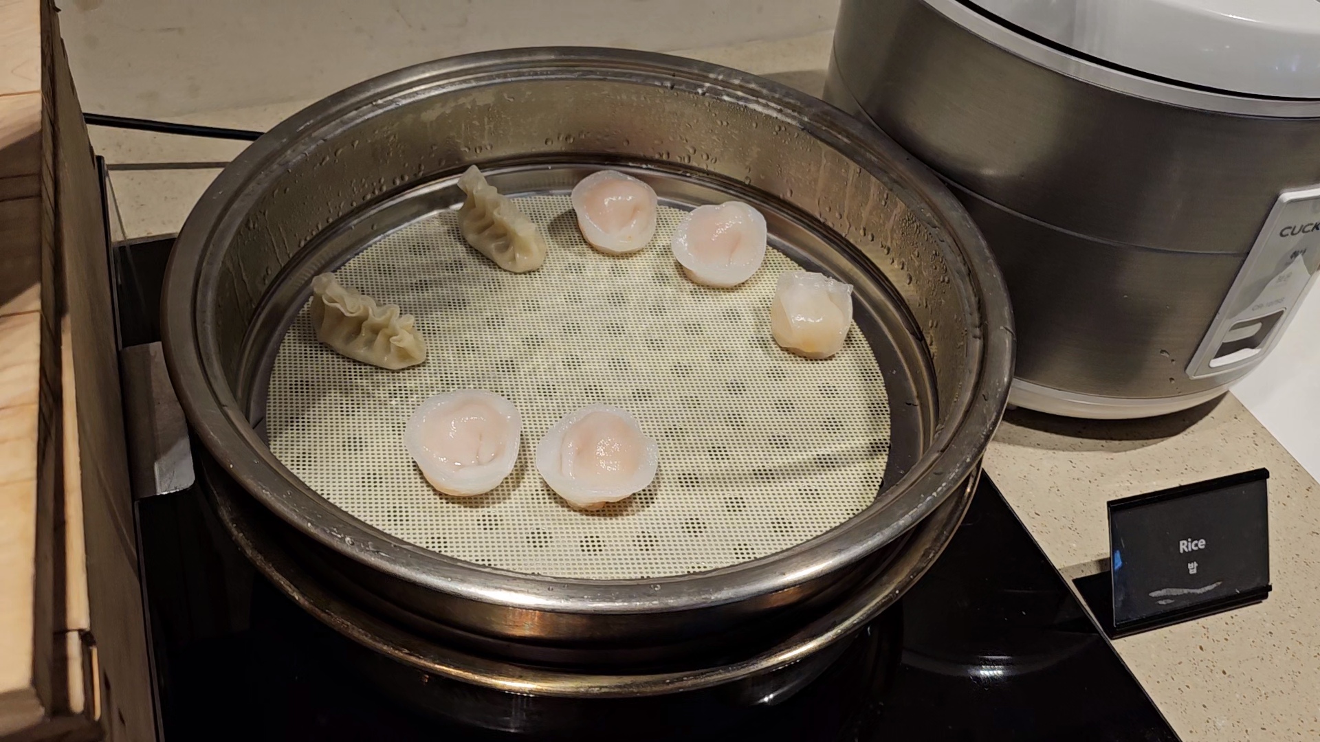 양송이스프, 오트밀, 새우 계란찜, 새우 딤섬 (새우어혈교, 새우하가우, 새우관자쇼마이)