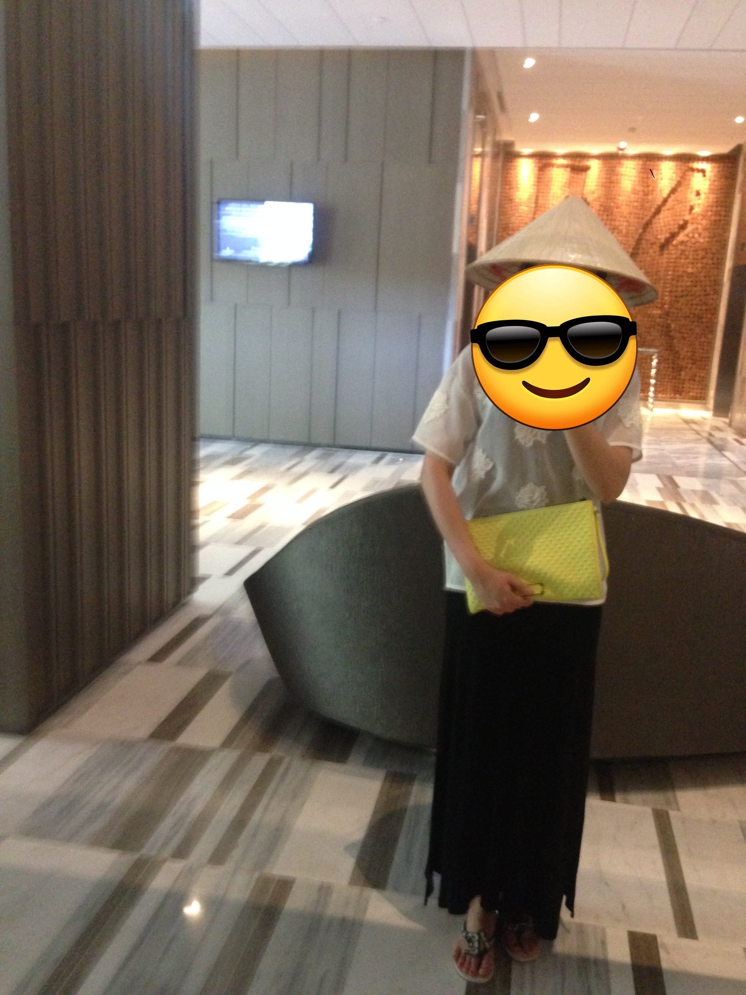 I wore a 1,000 won Vietnamese traditional hat that I bought at the market.